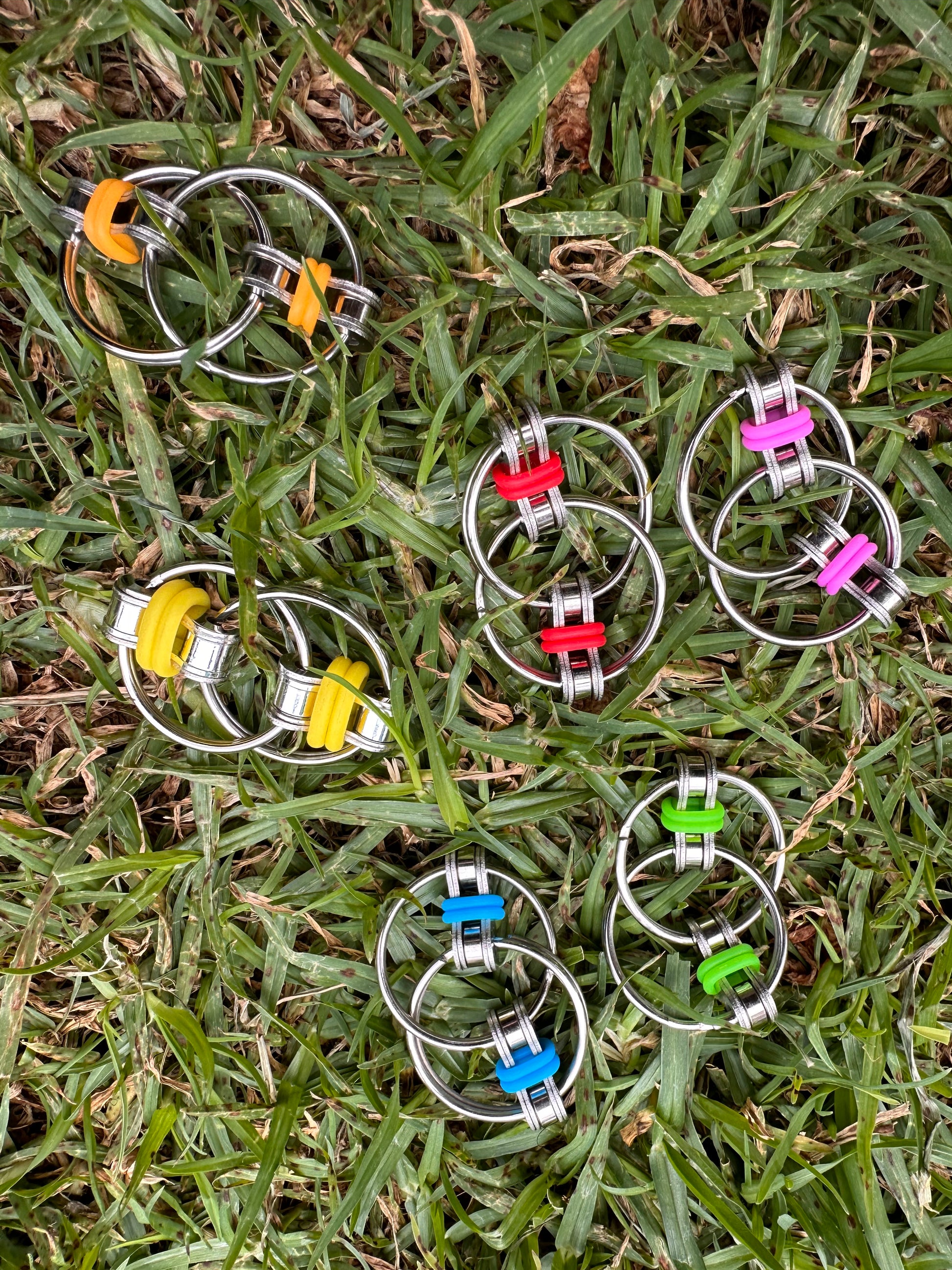 These fidgets offer a satisfying tactile experience for those who enjoy fidgeting with both hands. Colours of the bands are picked at random.