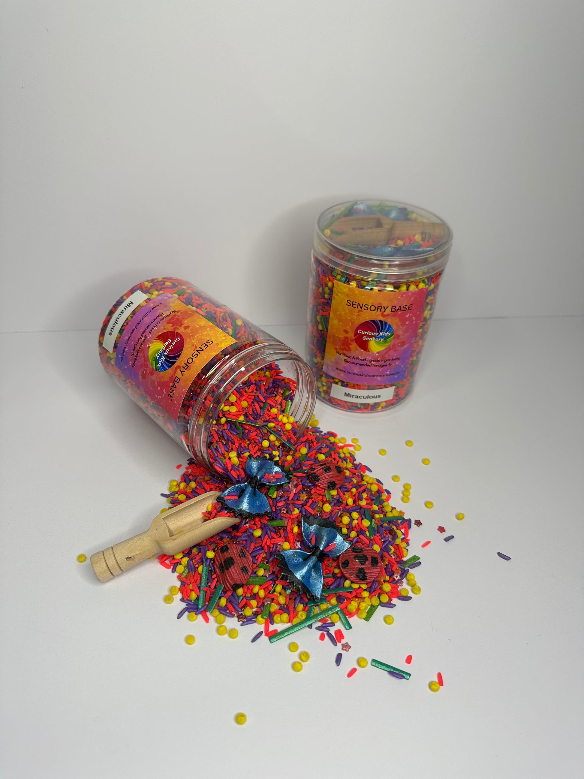 Made with non toxic ingredients. To ensure safety, we strongly advise adult supervision when handling our products. Small pieces and loose parts can be a choking hazard, which is why we recommend our products for children aged 3 and above. For any inquiries, please feel free to reach out to Curious Kids Sensory.