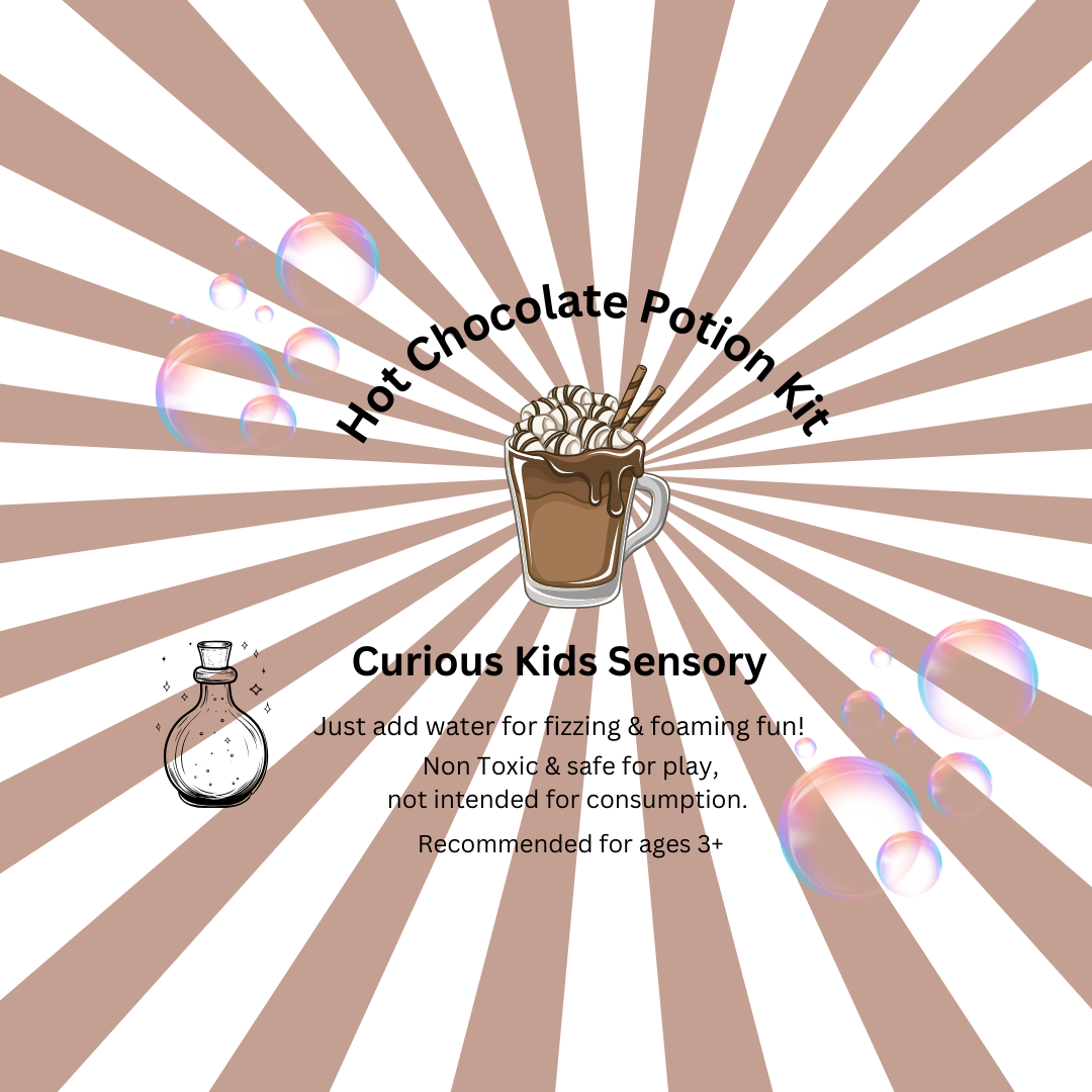 Indulge in the ultimate cosy fun with our Hot Chocolate Potion Kit! This irresistible kit is perfect for creating your very own fizzy hot chocolate potion play. With the rich scent of chocolate fudge brownie, sprinkles, glitter, and marshmallows that dissolve in water, every mix and stir feels like magic. Watch as the potion fizzes and bubbles, transforming into a sensory masterpiece that’s just as fun to make as it is to watch. Packed with everything you need for a sweet and sparkly potion experience, this kit is pure chocolatey bliss for little potion-makers!